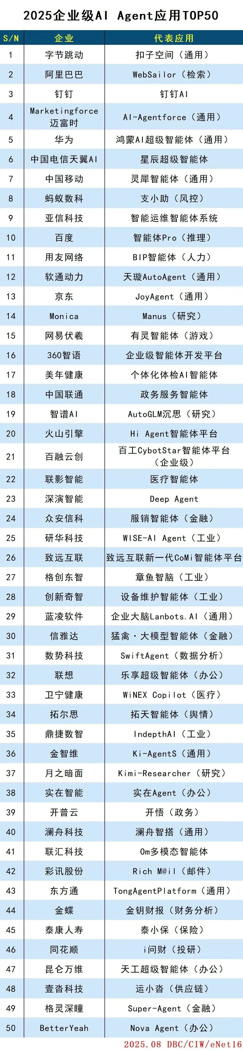 近日,壹定发智能其AI智能体平台Deep Agent成功入选德本咨询(DBC)发布的“2025企业级AI Agent应用TOP50”榜单。这是该平台继入选IDC《中国AI Agent应用市场概览》报告后,再次获得权威机构认可。